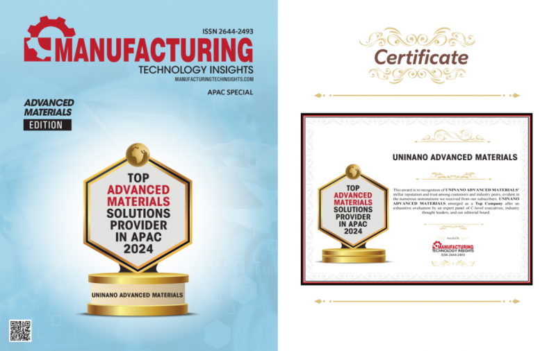 优纳荣膺美国权威杂志《制造技术洞察》评选的 “2024 年度亚太地区先进材料解决方案提供商”